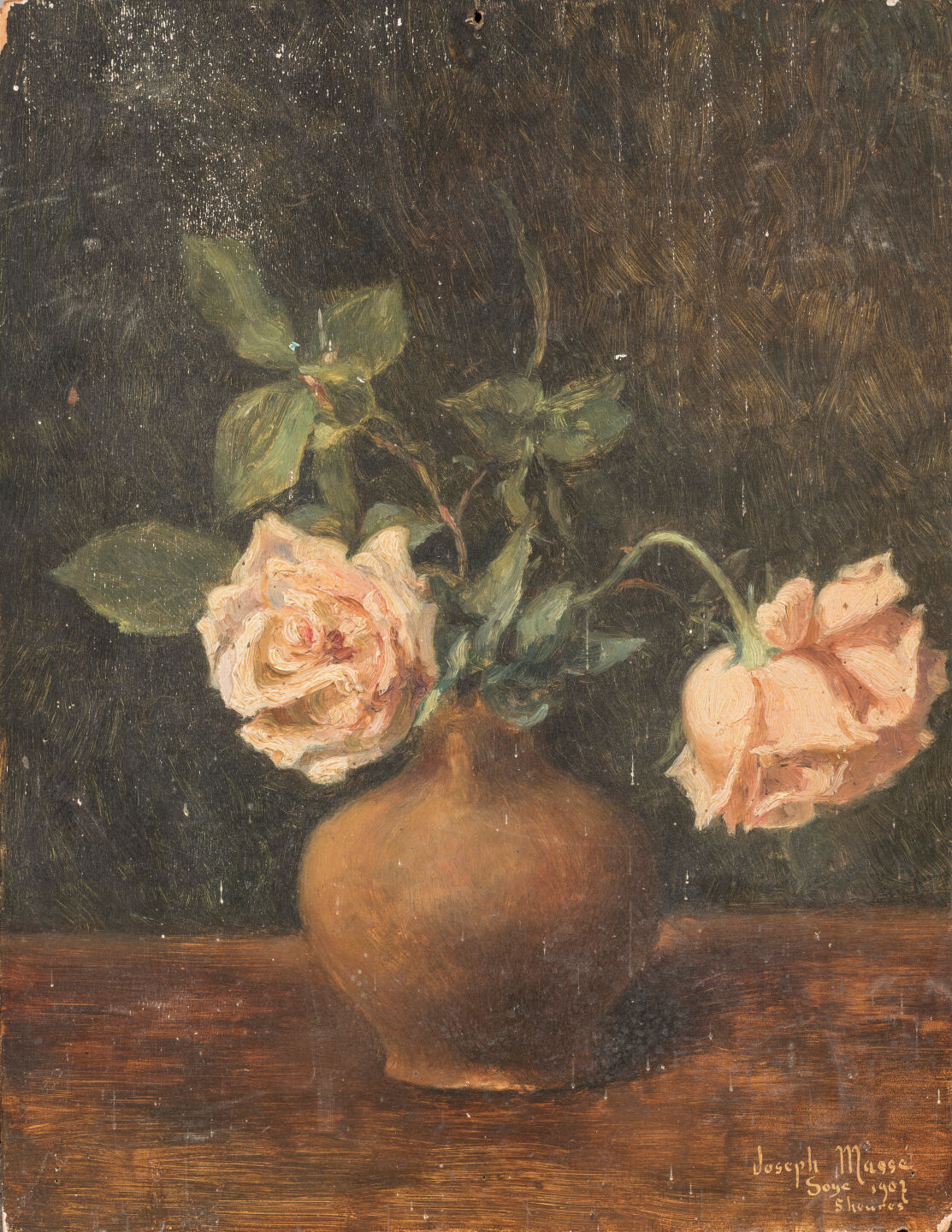 Joseph MASSÉ (1878 - 1946), "Intérieur de maison" et "Nature morte aux fleurs", signés et datés de 1907.