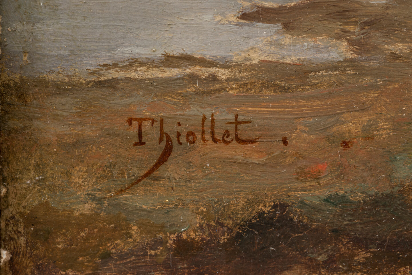 THIOLLET. "Alexandre, jeu d'enfants à Villerville". Huile sur panneau signée...