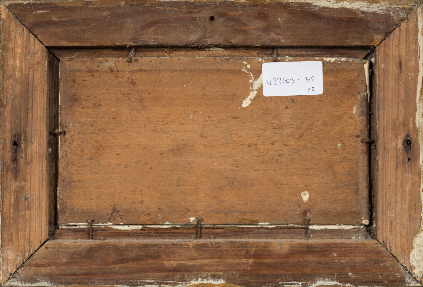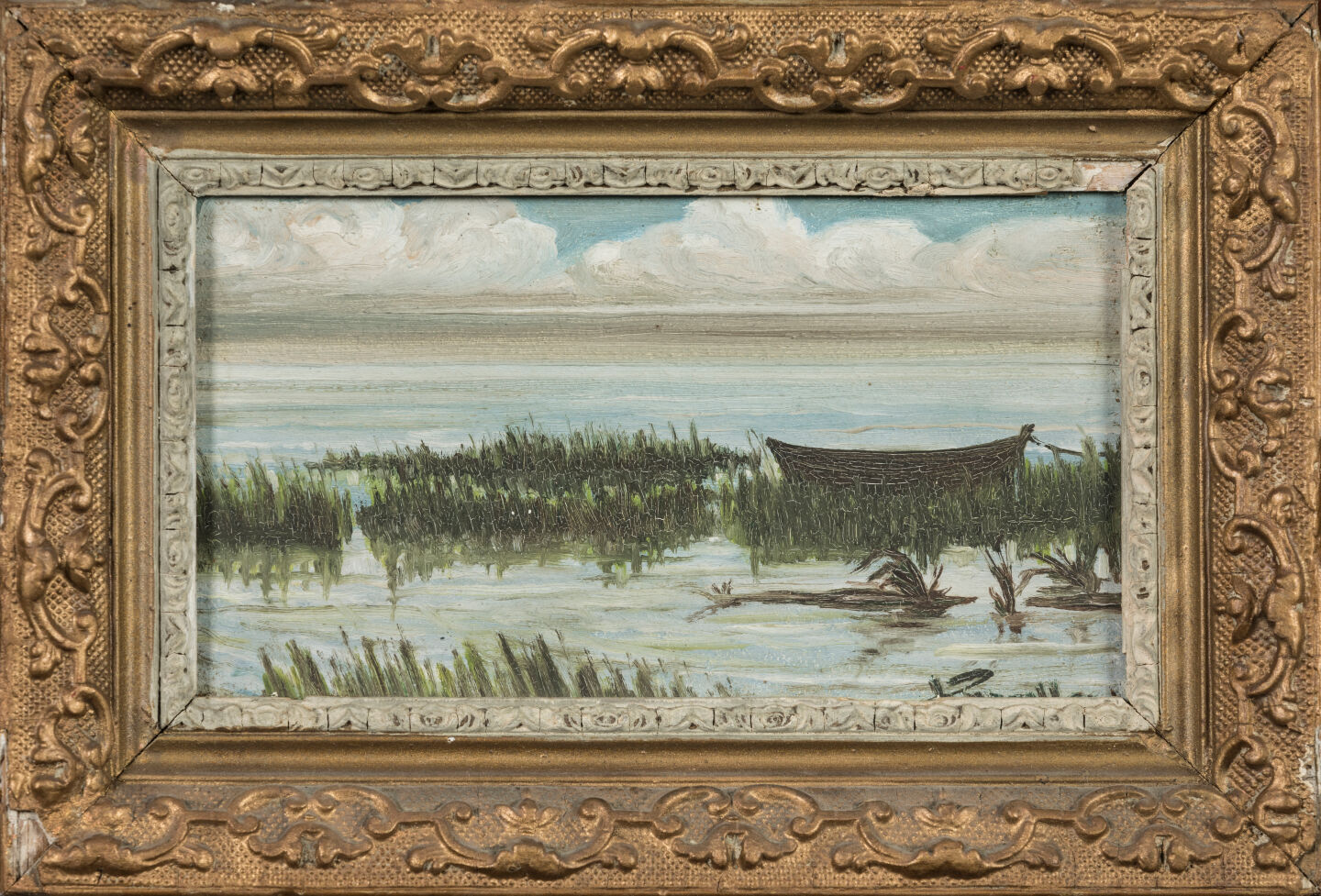 École russe de la seconde moitié du XXème siècle. En pendant : -Barque sur l'eau. Huile sur panneau. Signé...