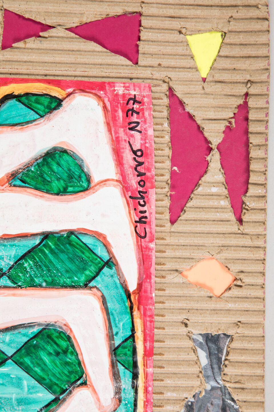 Mario CHICHORRO (1932-2023). Groupe, 1977. Peinture sur papier collé en plein carton ondulé. Signé et daté en bas...