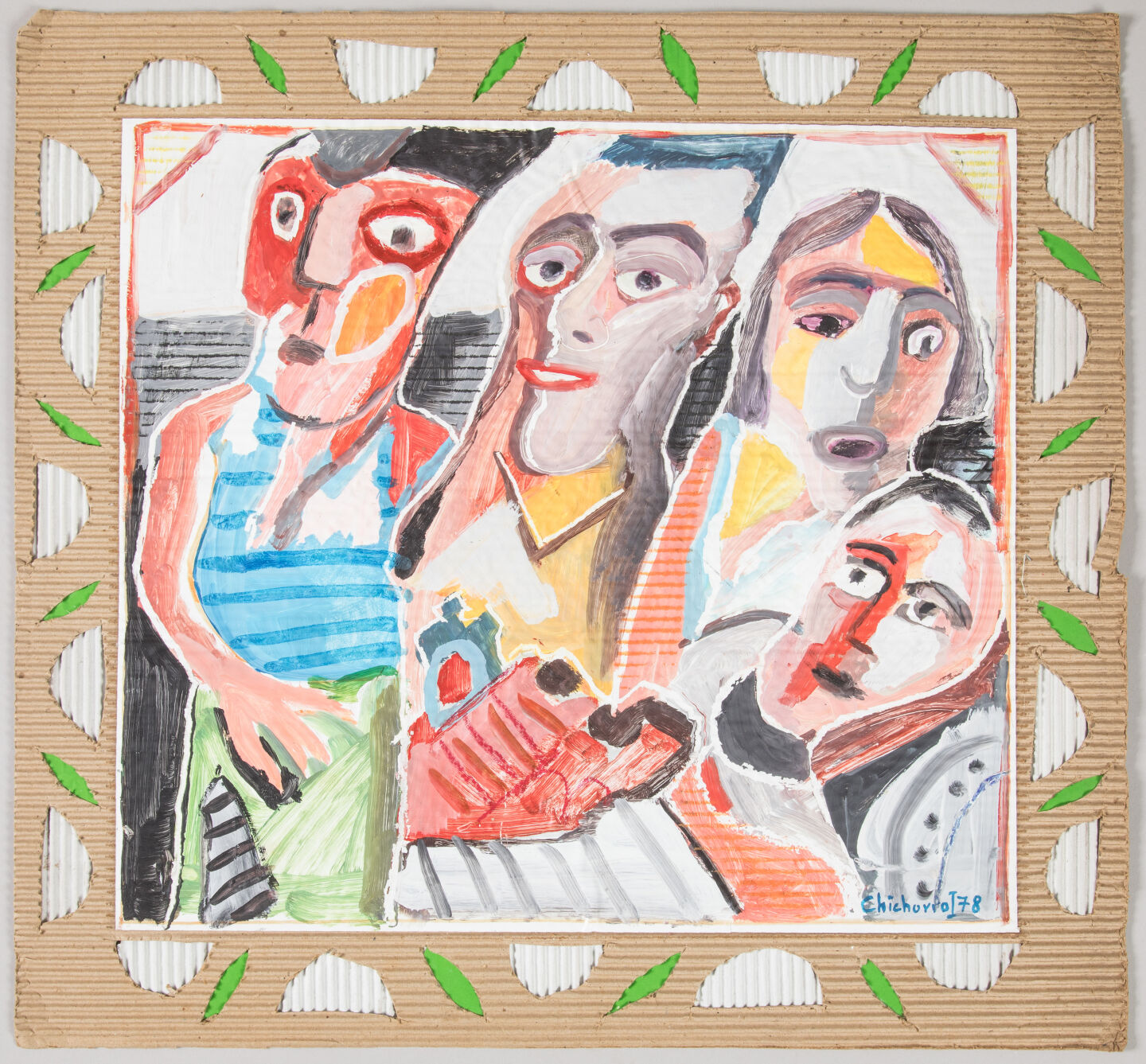 Mario CHICHORRO (1932-2023). Groupe, 1978. Peinture sur papier collé en plein sur carton ondulé. Signé et daté en...