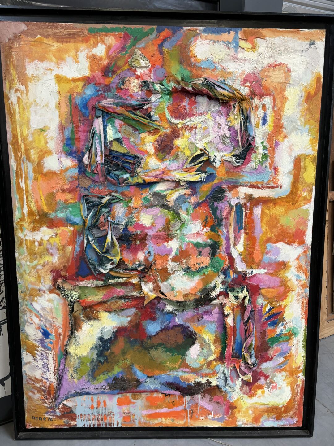 Jean-Noël IMAR (1943-2023). COmposition abstraite. Huile et collage sur toile marouflée sur panneau, signée et datée 82 en bas à gauche. 149 x 110 cm.
