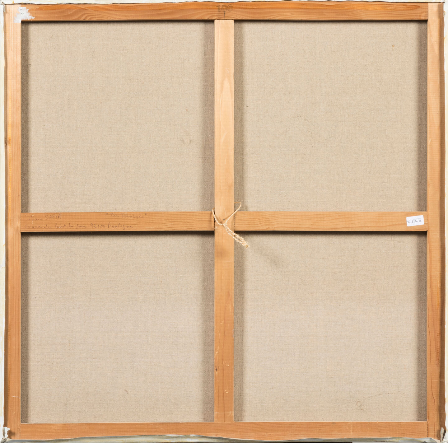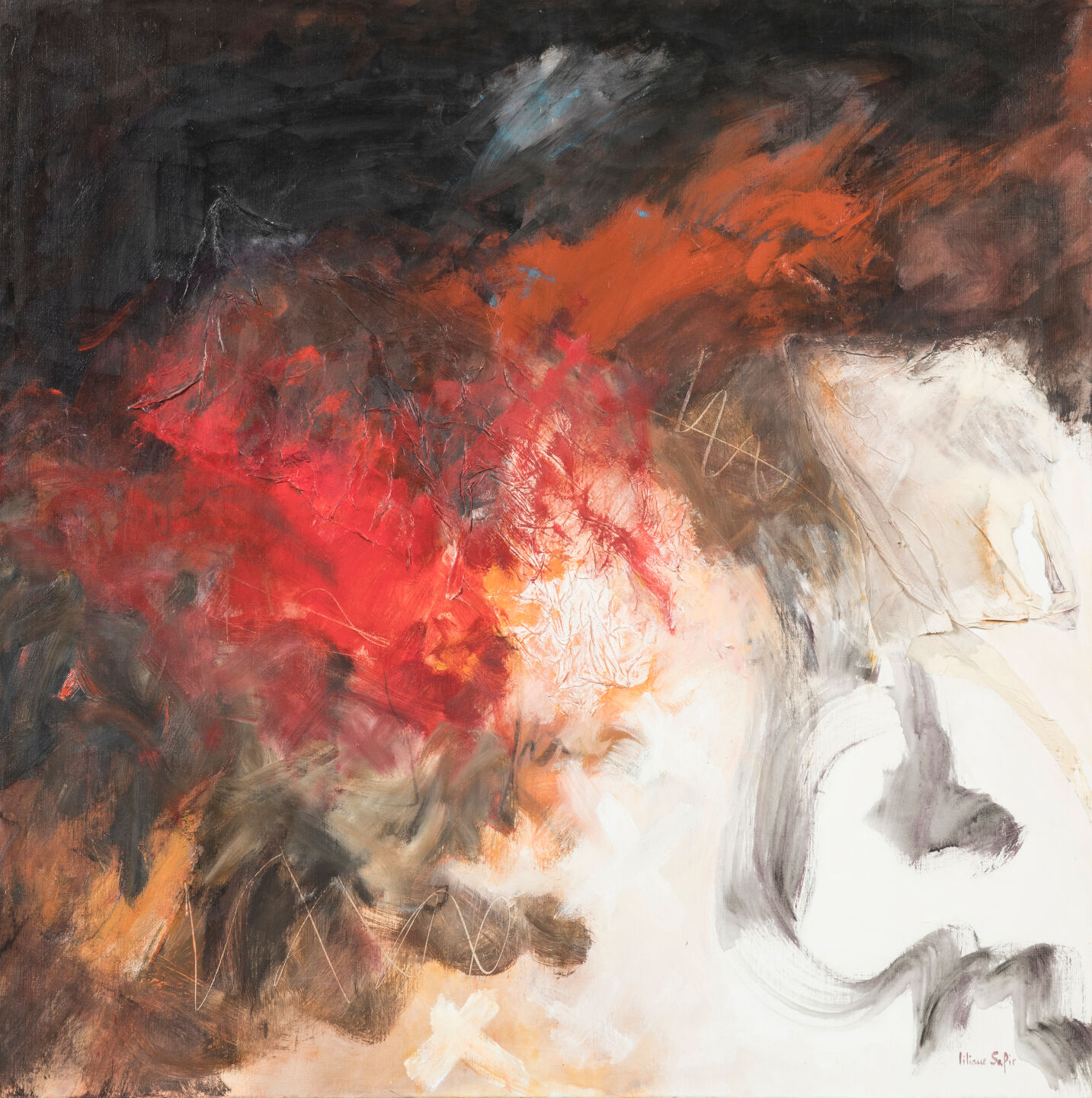 Liliane SAFIR (née en 1935). Composition. Huile sur toile et collage de papiers déchirés. Signé en bas à droite. 100 x 100 cm. OH