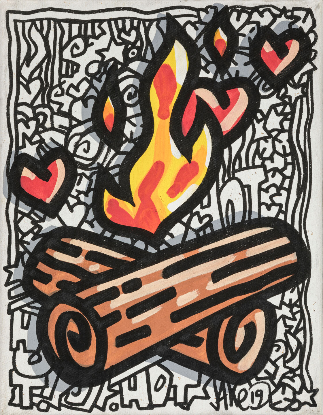 JAKÈ (Né en 1967). Le feu, 2019. Acrylique sur toile. Signé et daté en bas à droite. 31 x 24 cm. OH