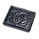 CHANEL - PORTEFEUILLE modèle "Compact" en cuir d'agneau bleu marine,...