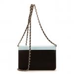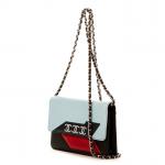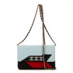 CHANEL - SAC à main modèle "Limited. Edition. Airline WOC" en cuir de veau noir, bleu marine, bleu ciel, gris métallisé et rouge, chaine en métal argenté entrelacé de cuir noir, un compartiment central et une poche zippée, agréments en métal doré. Avec son dustbag et son certificat d'authenticité Chanel. Numéroté. 19 x 12 x 4 cm. Excellent état général, proche du neuf.