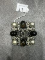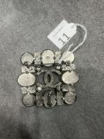 CHANEL BROCHE en métal et pierre fantaisie en cabochon. DIm : 7x 7 cm