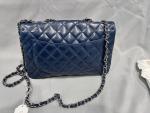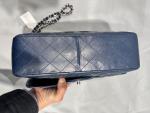 CHANEL SAC A MAIN Timeless Jumbo noir Giant en cuir bleu de veau matelassé, agréments en métal argenté. Bon état général. L : 30 cm.