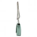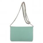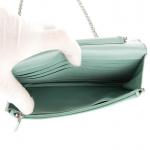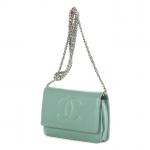 CHANEL - SAC à main modèle "Classic Timeless Wallet on Chain" en cuir de veau bleu sarcelle, rabat à pression avec double C embossé, découvrant à la fois un compartiment avec poche et espace pour les cartes et deux poches dont une zippée, chaine en métal argenté entrelacé de cuir, agréments en métal argenté. Avec sa boite et sa carte d'authenticité. Numéroté. 19 x 12 x 3 cm. Très bon état général, légères usures notamment des angles.