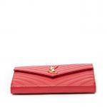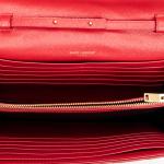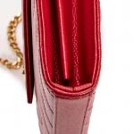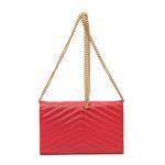 YVES SAINT-LAURENT - SAC à main modèle "Classic Cassandre Chain Wallet" en cuir de veau poudré rouge matelassé, rabat siglé "YSL" à pression, découvrant deux compartiments avec chacun une poche plaquée et deux espaces pour les cartes, poche centrale zippée, chaine amovible et agréments en métal doré. Numéroté. 22.5 x 14 x 4 cm. Excellent état général, proche du neuf, métal du sigle central préservé par un film protecteur.