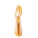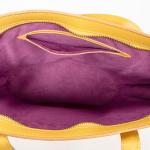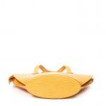 LOUIS VUITTON - SAC à main modèle "Saint-Jacques" en cuir épi jaune, petit modèle, intérieur en suédine violette, agréments en métal doré. Numéroté. 23 x 24 x 10 cm. Bon état général, petites usures des angles et infimes taches.