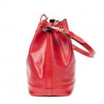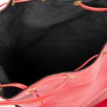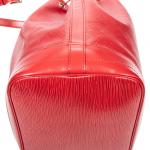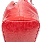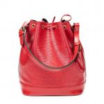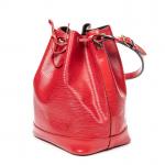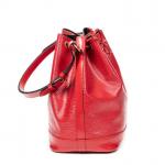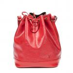 LOUIS VUITTON - SAC à main modèle "Noé" en cuir épi rouge, grand modèle, intérieur en suédine noire, agréments en métal doré, bandoulière ajustable. 27 x 34 x 16 cm. Très bon état général, infimes usures et une petite tache.