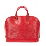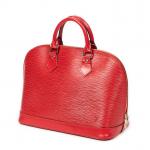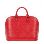 LOUIS VUITTON - SAC à main modèle "Alma" en cuir épi rouge, petit modèle, agréments en métal dorés. Numéroté. 30 x 23 x 15 cm. Très bon état général, petites griffures.