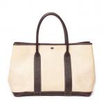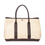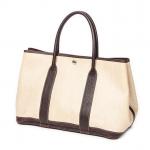 HERMES - SAC à main modèle "Garden Party" en toile beige, agréments en palladium, ouvrant en un compartiment à pression. Lettre C dans un carré. 36 x 25 x 17 cm. Très bon état général, petite trace de stylo à l'intérieur.
