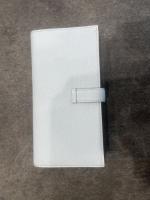 HERMES portefeuille modèle BEARN en cuir de chèvre Mysore couleur "bleu brume", bijouterie en palladium....
