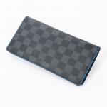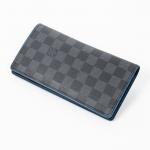 LOUIS VUITTON - PORTEFEUILLE modèle "Brazza" en cuir damier graphite bleu marine, agréments en métal argenté. Numéroté. 10 x 19 x 1.5 cm. Bon état général, petites usures des angles, petites usures et griffures.