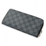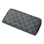LOUIS VUITTON - PORTEFEUILLE modèle "Zippy Vertical" en toile damier graphite, agréments en métal argenté. Numéroté10 x 20 x 2 cm. Excellent état général, proche du neuf, infimes griffures.