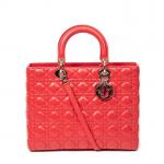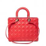 DIOR - SAC à main "Large Lady Dior Zip" en cuir d'agneau matelassé rouge à...