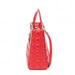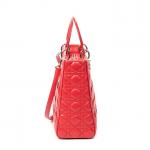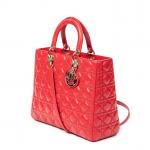 DIOR - SAC à main "Large Lady Dior Zip" en cuir d'agneau matelassé rouge à surpiqure Cannage, ouvrant par une fermeture éclaire sur un compartiment avec une poche latérale zippé, intérieur en toile marron monogrammée, charms et agréments en métal doré. Avec sa bandoulière en cuir rouge. Numéroté. 32 x 25 x 11 cm. Excellent état général, proche du neuf, films protecteurs présents sur certaines parties métalliques.