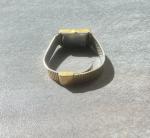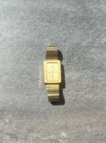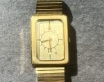 LIP. MONTRE bracelet en métal doré boitier rectangulaire, cadran fond or brossé à guichet dateur en 6H.