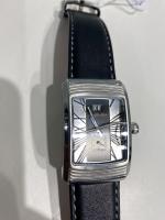 MAUBOUSSIN, modèle Energie vitale. Large montre bracelet, boîtier rectangulaire, cadran fond acier, cadran des secondes et guichet dateur en 12h. Vitre accidentée.