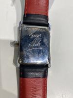 MAUBOUSSIN, modèle Energie vitale. Large montre bracelet, boîtier rectangulaire, cadran fond acier, cadran des secondes...