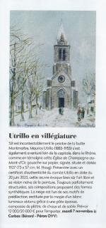 La Gazette Drouot met en avant dans sa publication du 3 novembre la belle Eglise de Champagne-au-Mont-d'Or de Maurice Utrillo. Cette gouache sera présentée dans notre vente consacrée aux Tableaux modernes et contemporains, qui se tiendra le 7 novembre à 14h00 à l'Hôtel des Ventes l'Annexe de Corbas.