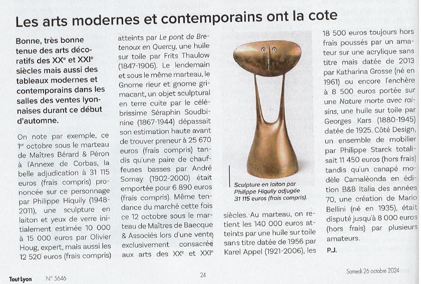 Consultez les articles écrits sur les beaux résultats de nos ventes d'octobre : Tableaux modernes et contemporains du 1er octobre et Arts Décoratifs du XXème siècle du 2 octobre.